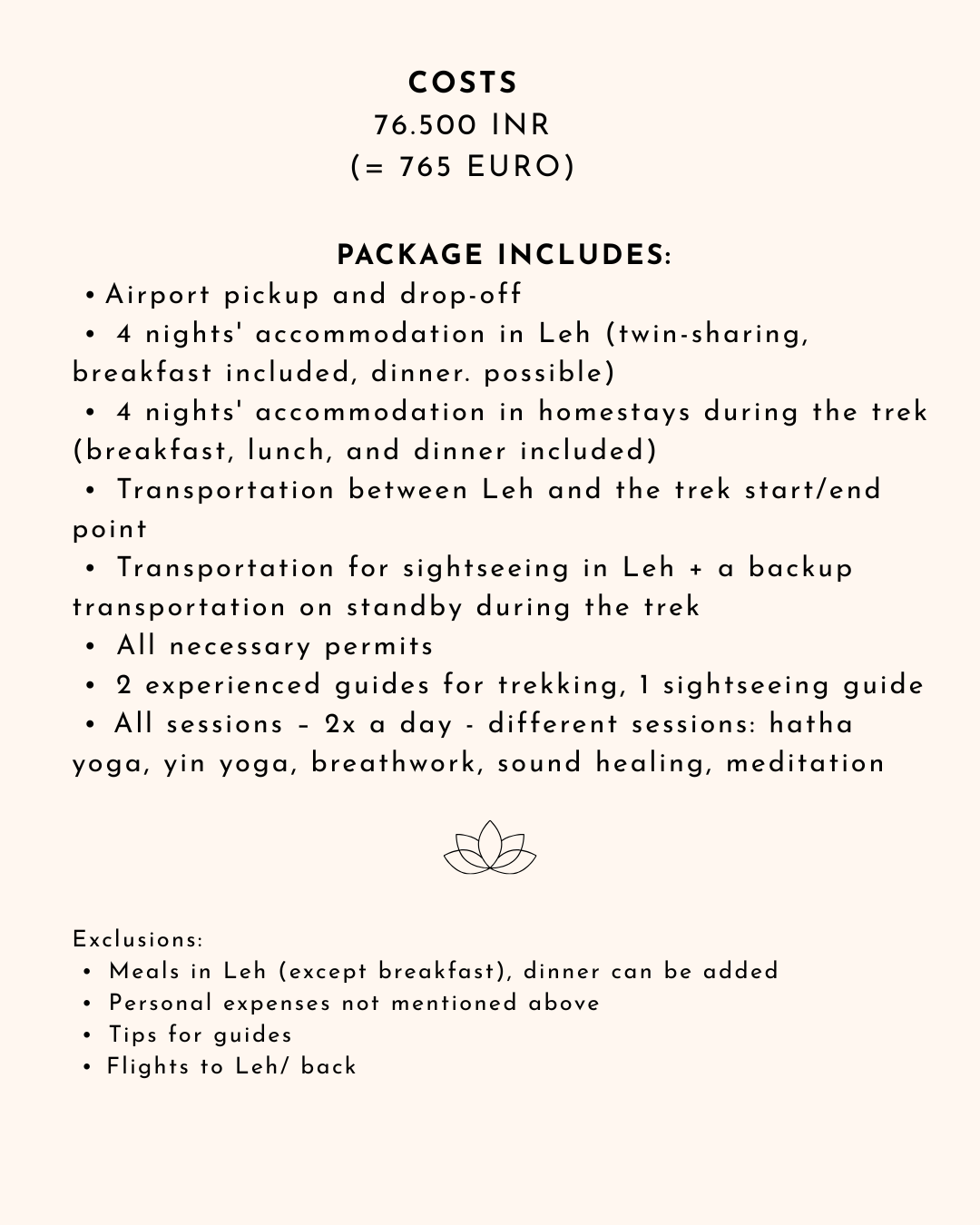 Single occupancy: 44.000 INR p.P. (440 €)